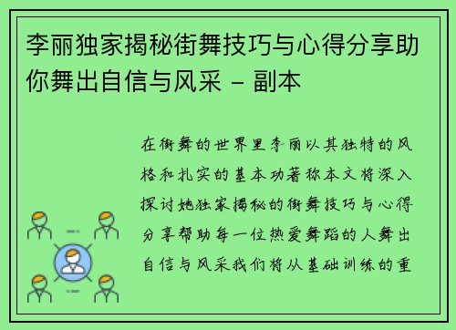 李丽独家揭秘街舞技巧与心得分享助你舞出自信与风采 - 副本